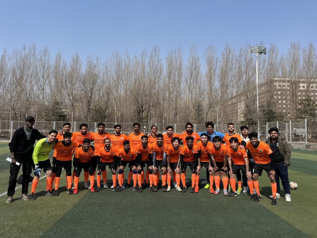 比赛开始,队员们展现出高昂的斗志与团结一心的精神面貌,攻防转换节奏紧凑,传球配合默契。首战面对强劲对手毫不畏惧,迅速进入比赛状态。队员凭借敏锐的洞察力和出色的个人技术突破对方防线,创造了多次具有威胁的射门机会。上半场临近半程,来自印度的2019级留学生SHUBHAM通过角球,头球摆渡,率先攻破对方球门,为我院取得1:0领先。下半场易边再战,还是由SHUBHAM同学,沿左路突破,甩开多名防守球员后冷静起脚,足球划过对方守门员十指应声入网,个人连中两球。比赛临近尾声,2018级留学生SHIBILY 接中场队友助攻,一记势大力沉的临空抽射,再次洞穿对方球门,最终比分定格在3:0。