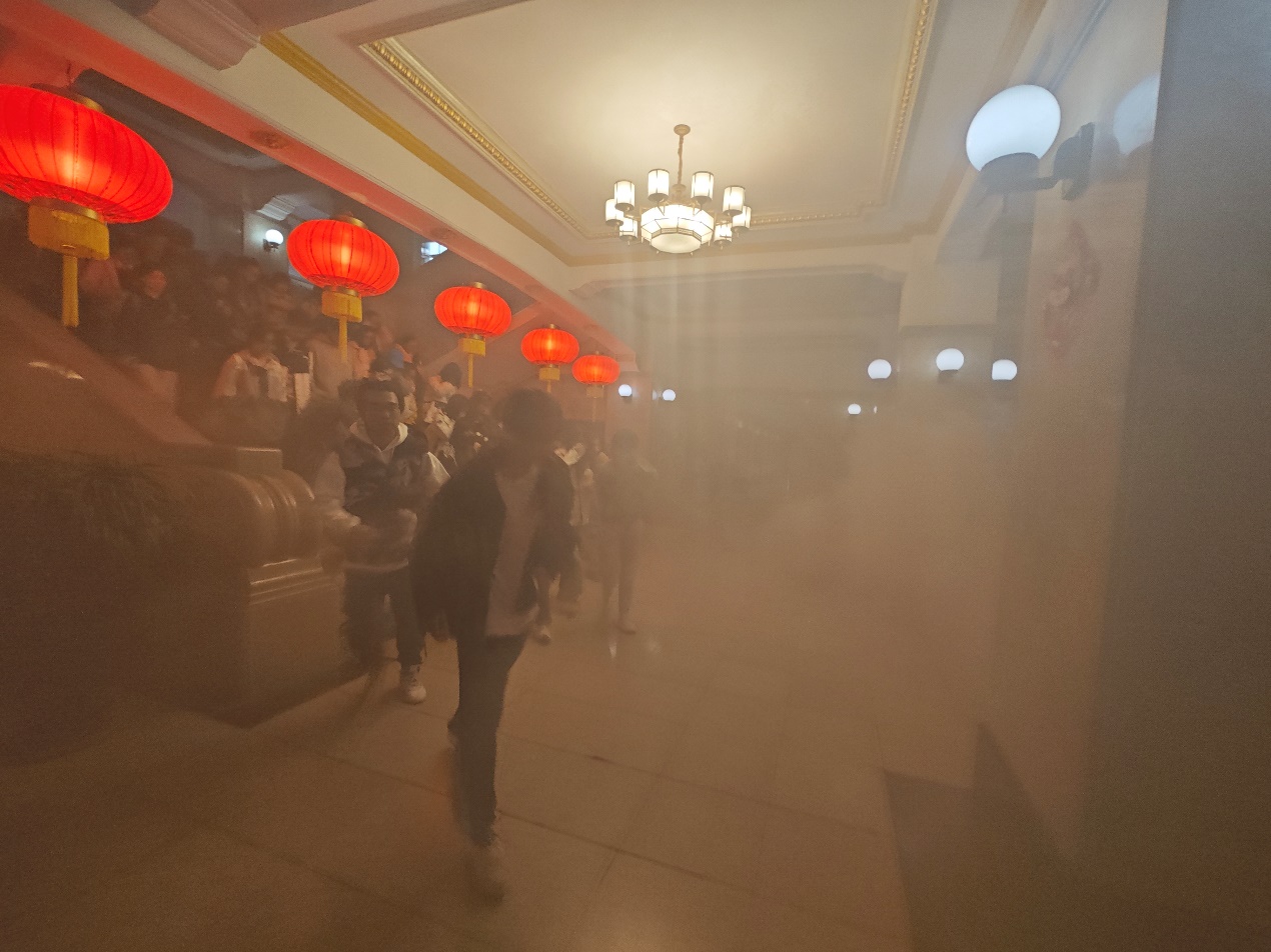 培训结束后,学院组织了疏散逃生和消防灭火实操演练活动,按活动前安排,学院组成由通讯组、疏散组、灭火组、医疗组、保障组组成的演练消防队,随着模拟浓烟升起,消防队帮助师生熟悉疏散逃生路线、掌握疏散逃生技能。大家手捂口鼻、弯下腰迅速有序地从指定楼梯和安全出口逃生,撤离到楼外的安全地带。随后,新民校区保卫处安志成老师详细演示了灭火毯、灭火器的用法,并指导老师和同学亲身体验,现场使用灭火毯、灭火器扑灭初期火灾,提升了突发情况的应急处置能力。