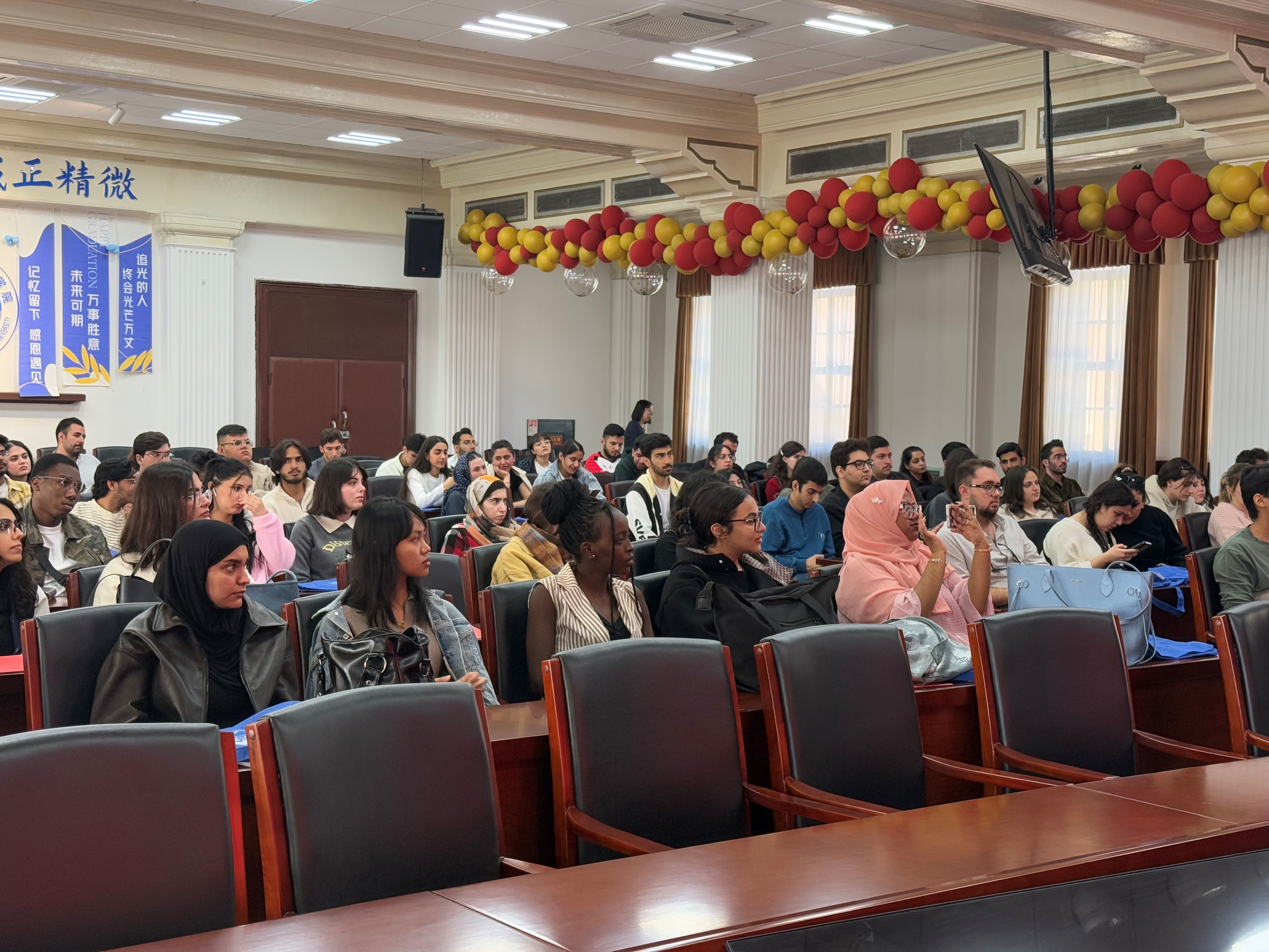 的文化底蕴、科研实力以及留学生的人才培养特色,并期望每一位同学在这里成长。同时,他提出了本次新生入学教育的意义,即帮助新生更快地适应在中国的生活和学习,熟悉校园环境,了解各项规章制度。