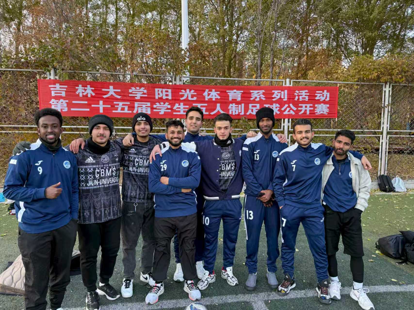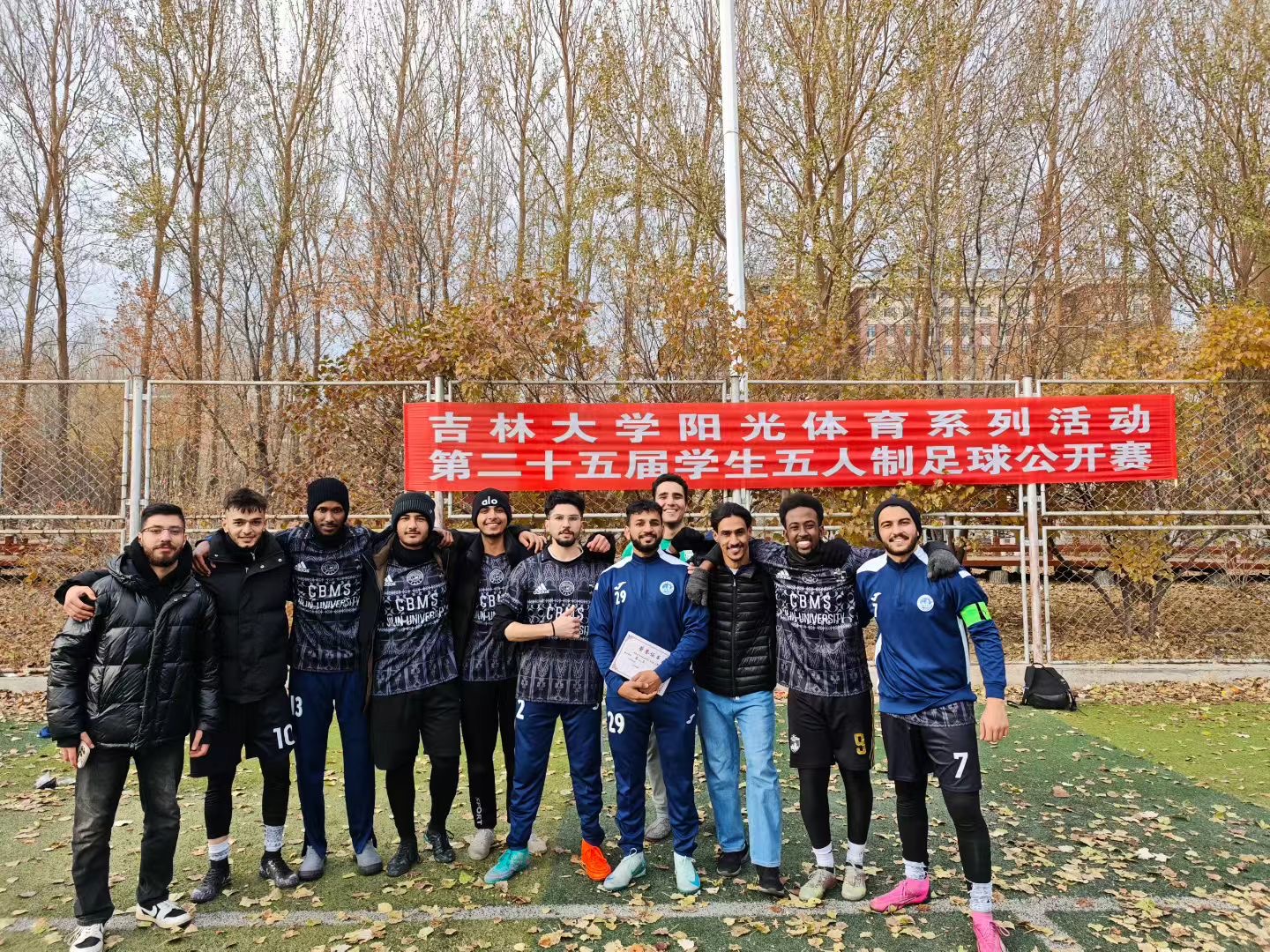 学生男子足球队MBBS留学生们展现出了卓越的竞技水平和顽强的拼搏精神。面对众多实力强劲的对手,他们始终保持高昂斗志,防守端默契协防,一次次化解对手凌厉攻势;进攻端配合精妙、敢打敢拼。每一次抢断时的全力以赴、每一次冲刺时的咬牙坚持、每一次射门时的专注执着,都凝聚着团队的汗水与决心。最终,他们凭借默契的配合、精湛的球技和顽强的斗志,为学院争得了荣誉!